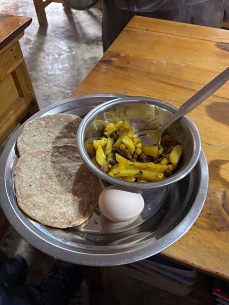 Zur Info: Seit fast 4 Jahren gibt es eine kleine staatliche Unterstützung für das Mittagessen von Schulkindern in Höhe von 15 Rupien für jeden Schultag. Dieser Betrag (im Augenblick etwa 10 Cent) wird an die Eltern ausbezahlt und soll es Eltern ermöglichen, ihren Kindern ein Mittagessen mit in die Schule zu geben. Der Unterricht startet in den Bergen wegen des langen Schulweges (manchmal 1 Stunde und mehr) um 10 Uhr und dauert bis 15 oder 16 Uhr, so daß Mittagessen in der Schule notwendig ist. Ein beträchtlicher Teil der Kinder kommt trotzdem ohne warmes Mittagessen in die Schule. Das fördert die Konzentration der Schüler leider nicht. Für ein normales warmes Mittagessen (Reis, Gemüse, Eier,…) braucht man zwischen 50 und 70 Rupien. Das staatliche Geld für Mittagessen wird in Sekar Sing statt an die Eltern an die Schule ausbezahlt. Den Rest steuert HCF aus Spendengeldern bei.