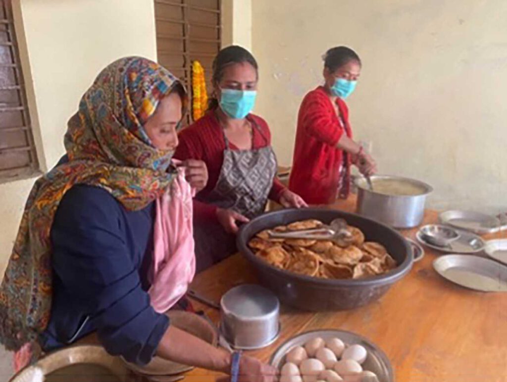 Von links nach rechts: Mittagessen im Nov. 2025 und im Frühjahr 2025, Köchinnen des Mittagessen.