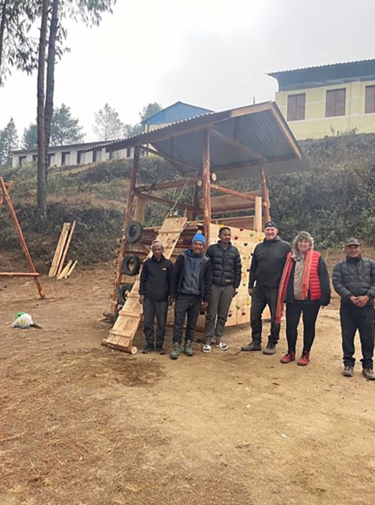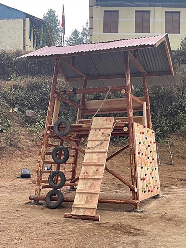 In der Mittagspause können die Schüler ein neues Klettergerüst, das Armin Pollak, der Mann von unserem Vorstandsmitglied Nikola Geiger, bei seiner Reise im Frühjahr 2025 gebaut hat, zum Toben nach dem Mittagessen nutzen.