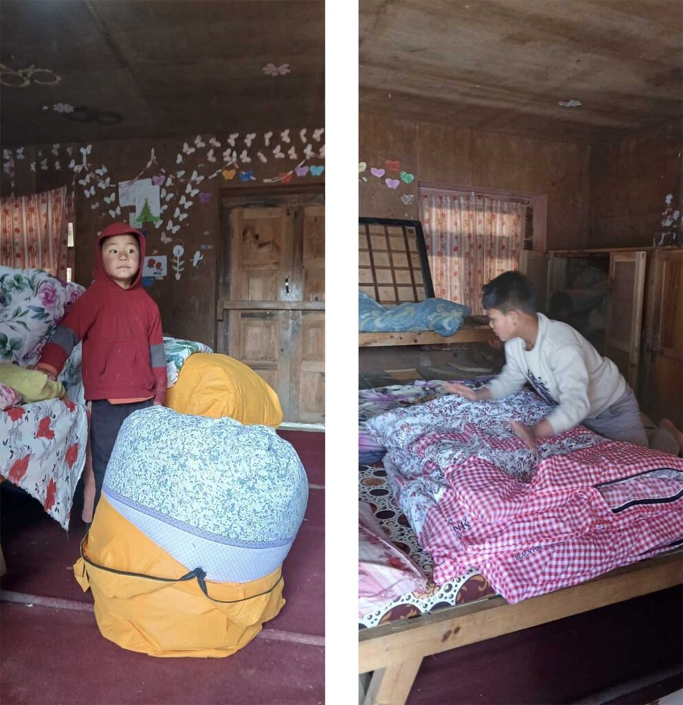 Sonam Sherpa und Lhakpa Sherpa, unsere beiden Mitarbeiter vor Ort, haben sich intensiv gekümmert und die neuen Bettdecken mit Bezug für alle 18 Betten letzten Monat übergeben. Zusätzlich haben sie viele neue Spielsachen mitgebracht. Die Begeisterung der Kinder war riesengroß.