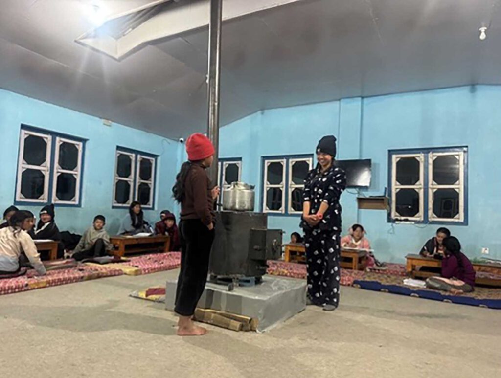 Aktuell wohnen im Waisenhaus 90 Kinder. Sie werden von 2 Lehrerinnen, die Schwestern sind, betreut. Zusätzlich stehen 2 Köchinnen zur Verfügung. Die älteren Jungen werden von einem eigenen Lehrer in einem anderen Gebäude betreut. In keinem der Schlafräume gibt es eine Heizung. Die meisten Gebäude in den Bergen Nepals haben nur die Feuerstelle zum Kochen als Wärmespender. Unterkünfte für Bergbegeisterte haben im Essensraum häufig einen Ofen, der Wärme spendet. Herzlichen Dank für die Wärme im Aufenthaltsraum unserer Kinder des Waisenhauses!
